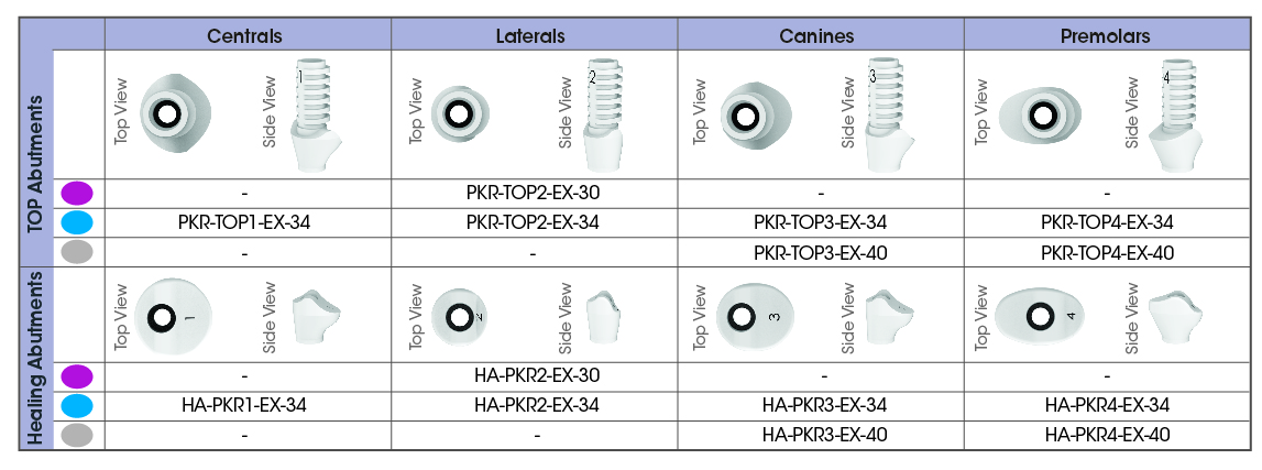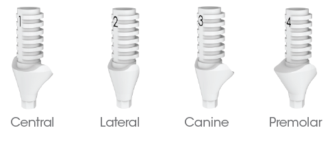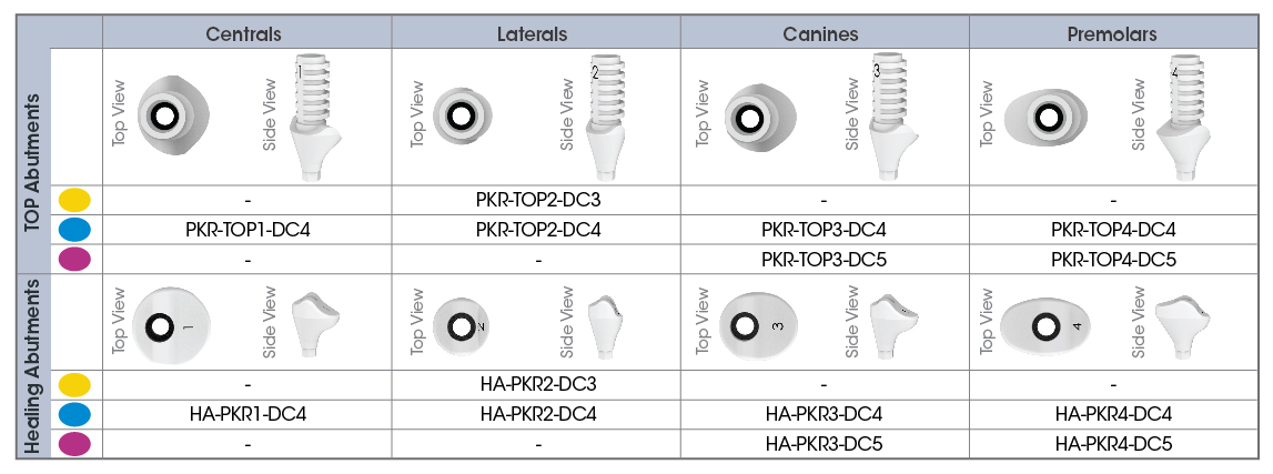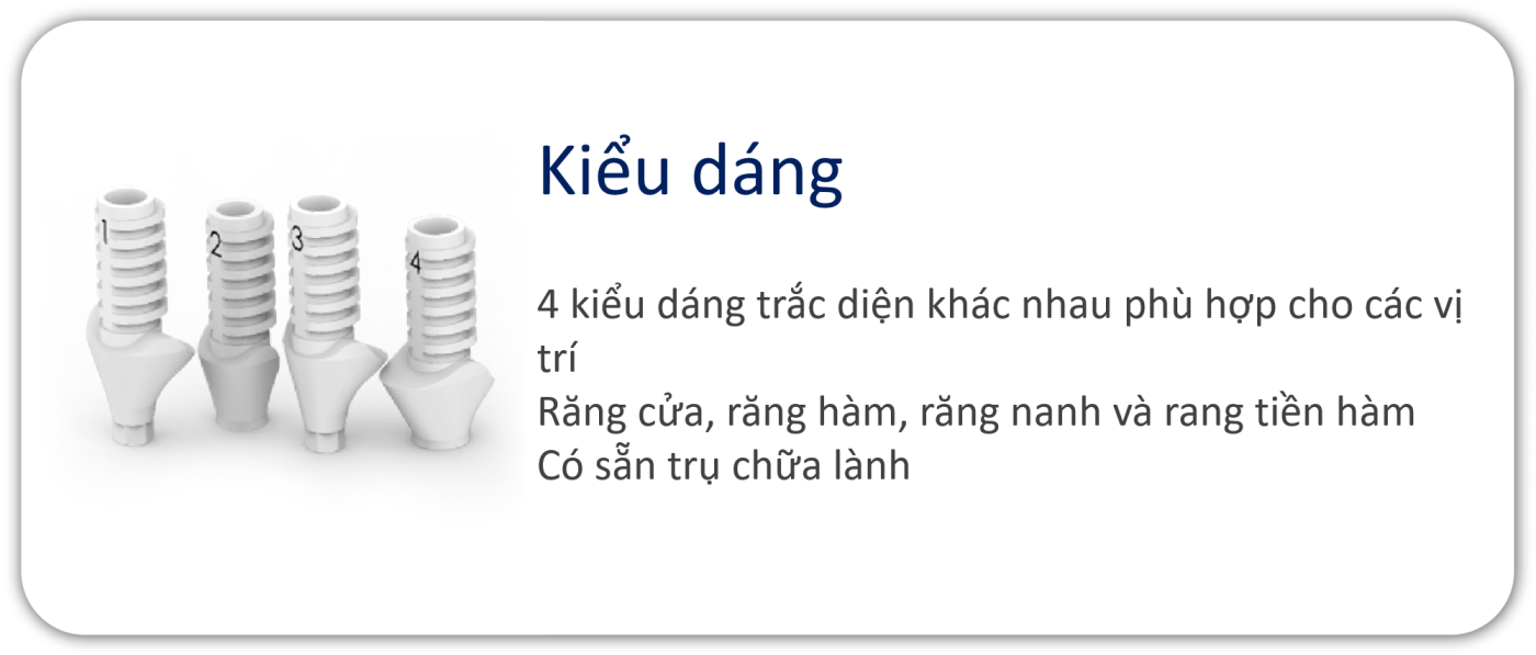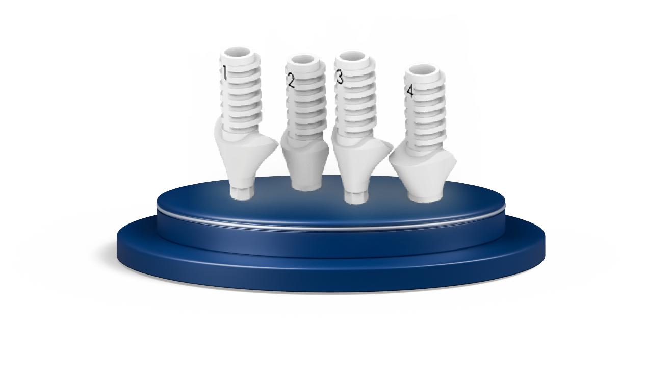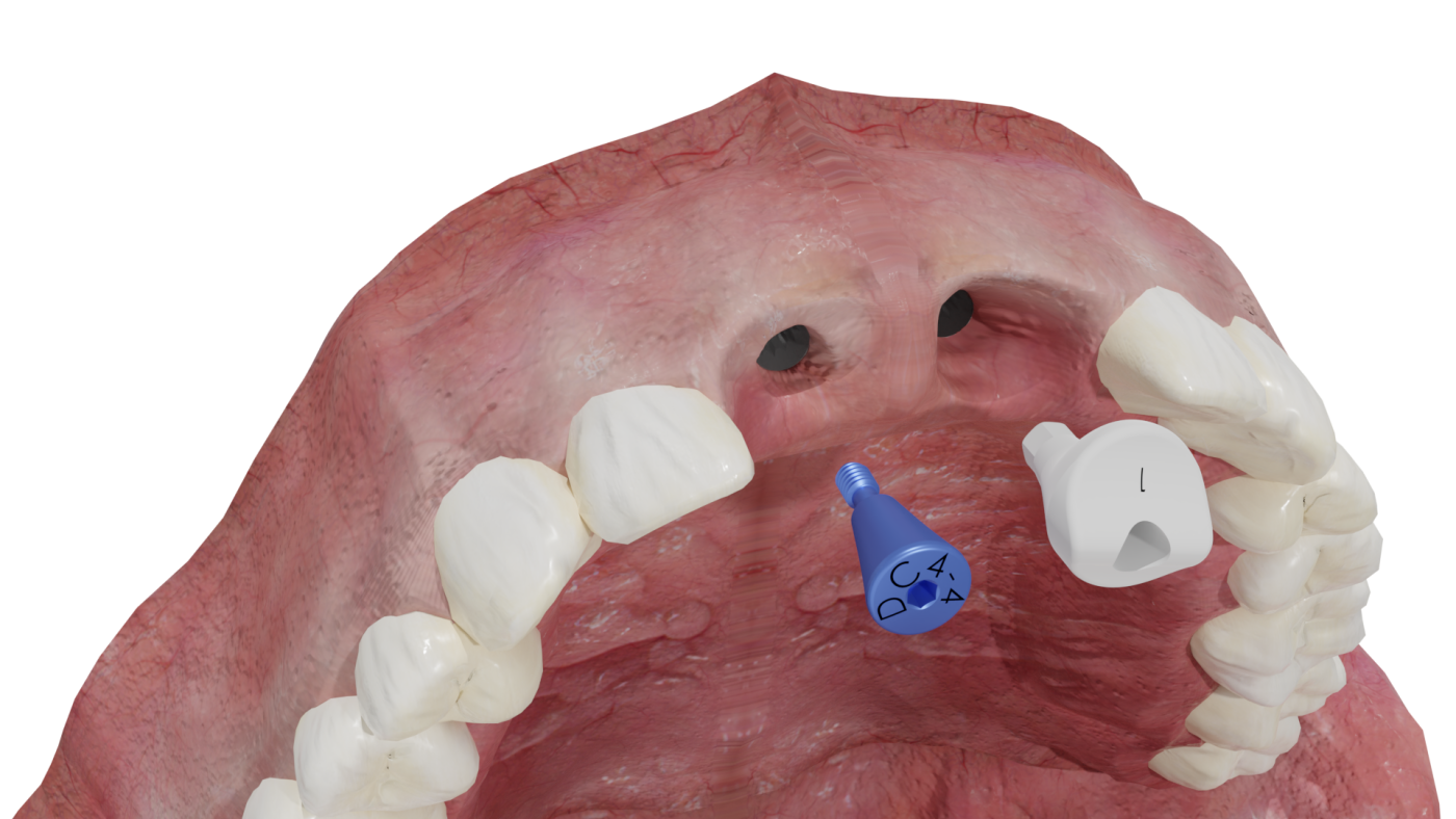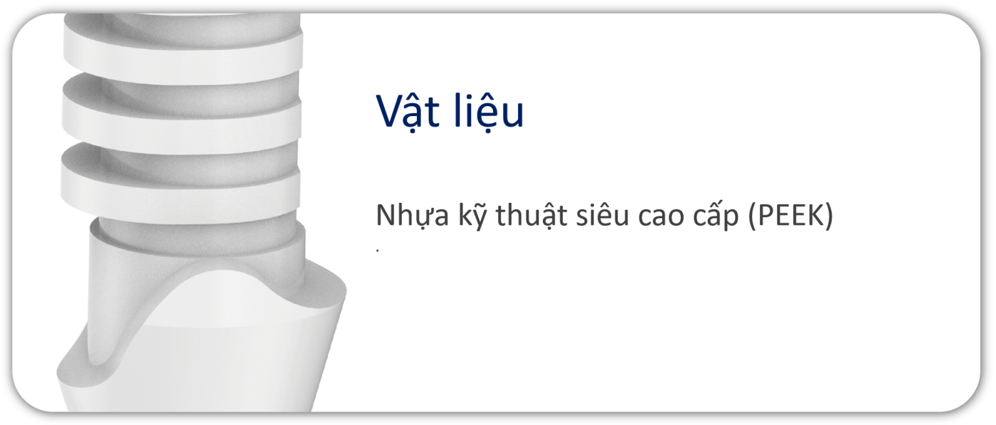 Các trụ tạm thời bằng PEEK có hình dạng lượn sóng, được thiết kế riêng cho từng vị trí, và các trụ lành thương có hình dạng giải phẫu.
